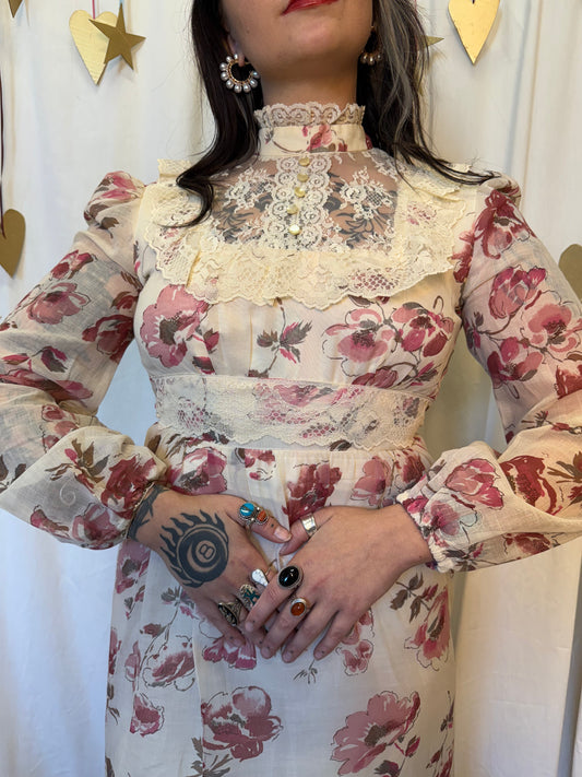 Vintage 1970’s Peony Squiggle Prairie Dress