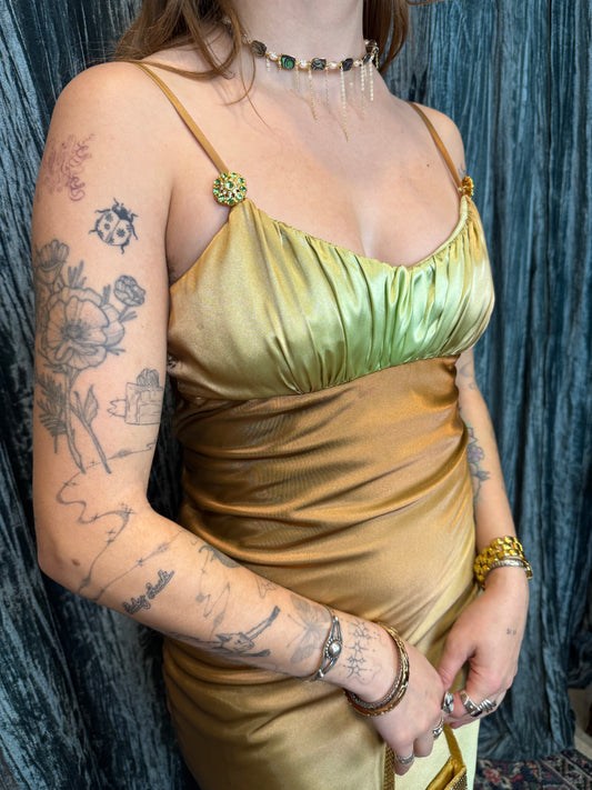 Vintage Y2K Beaded Emerald City Evening Gown