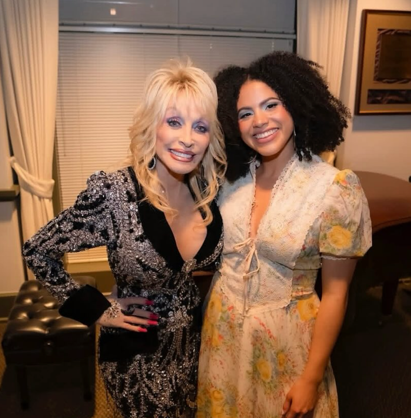 backstage with Dolly Parton after performing a cover of Dolly's "My Tennessee Mountain Home" with the Nashville Symphony in a No Good Vintage dress