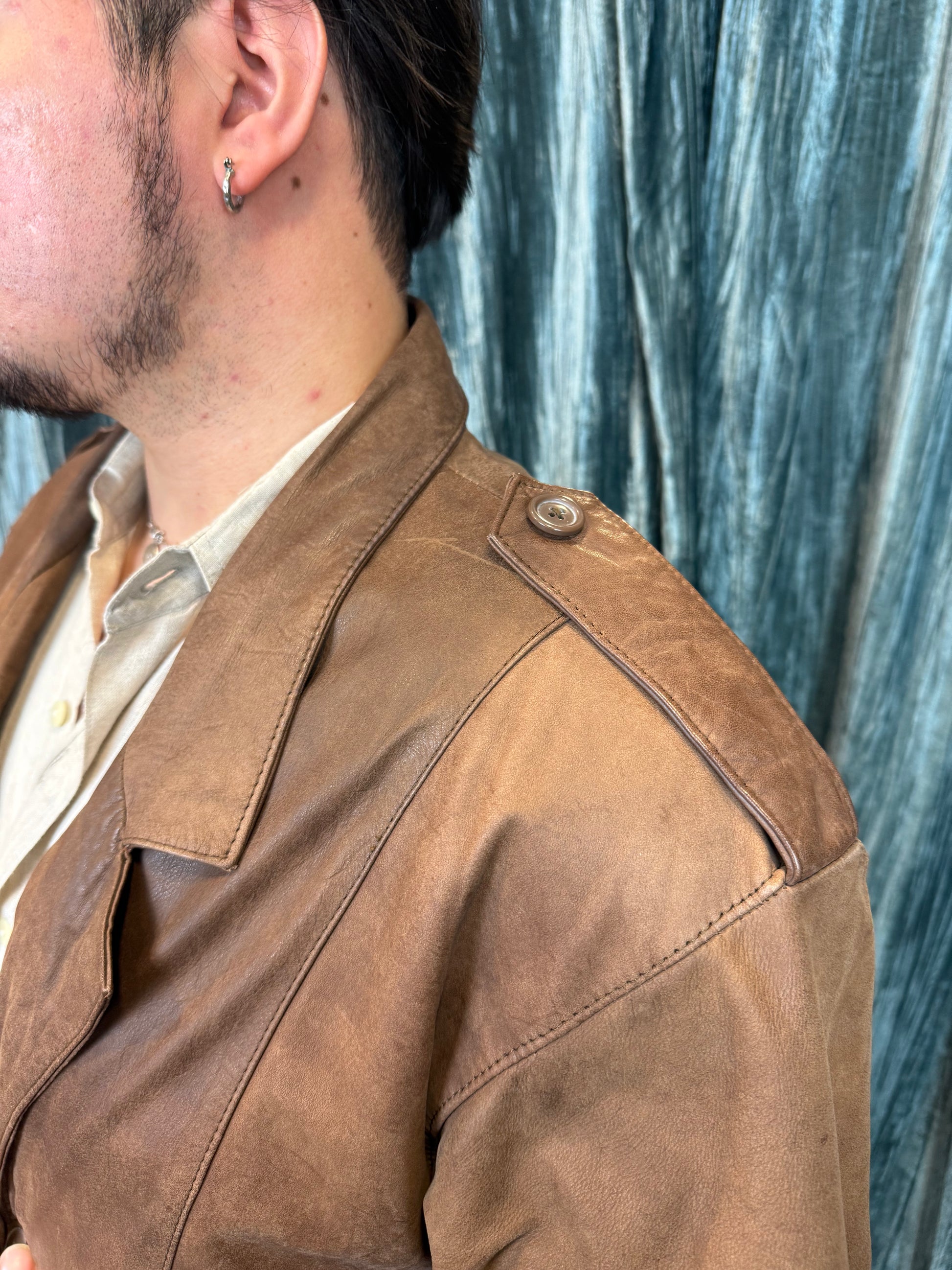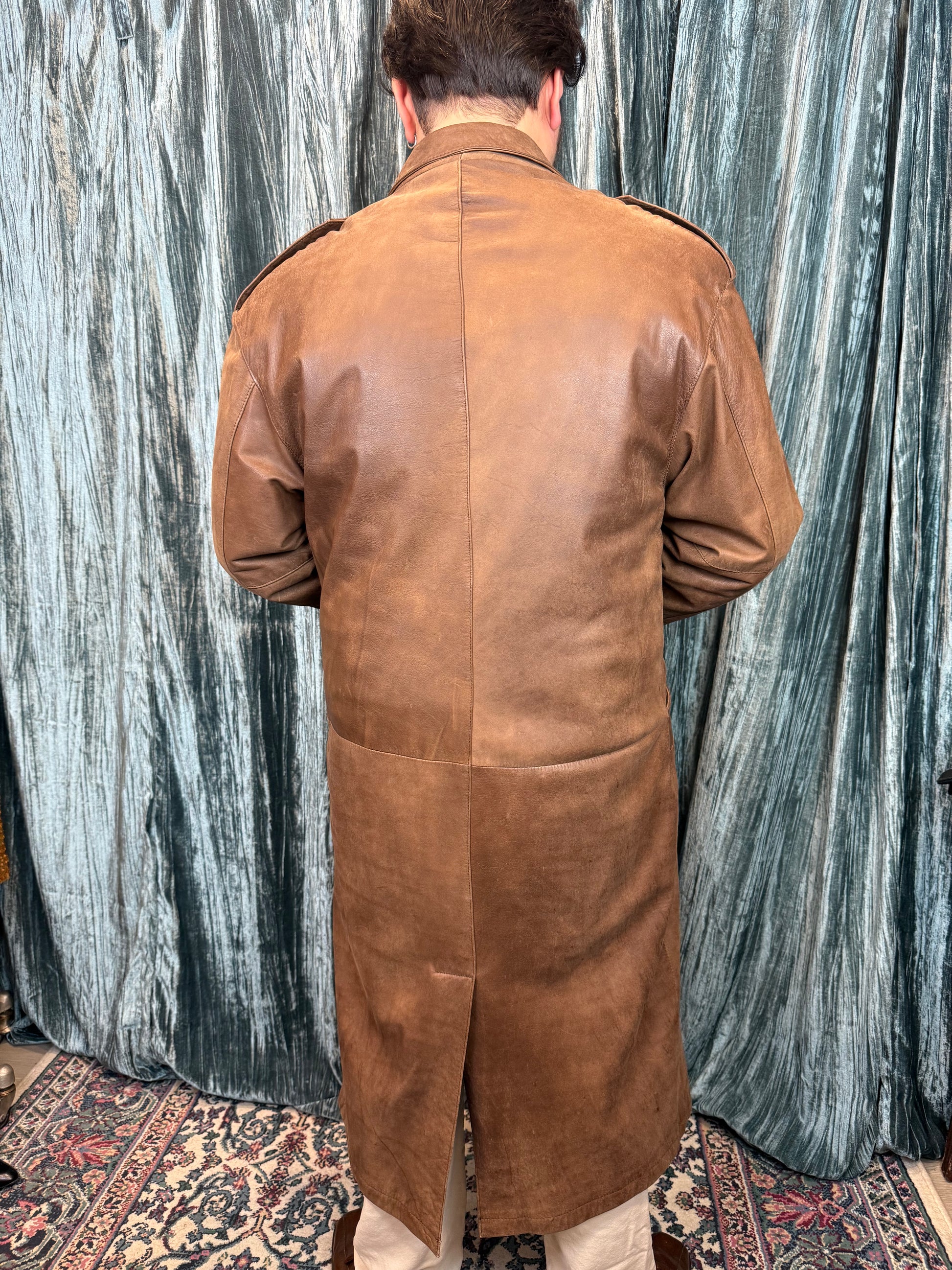 80's Whiskey Brown Smooth Leather Trench Coat